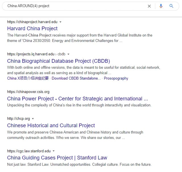 临近搜索,表示两个搜索关键词中间最多相邻 X 个词。