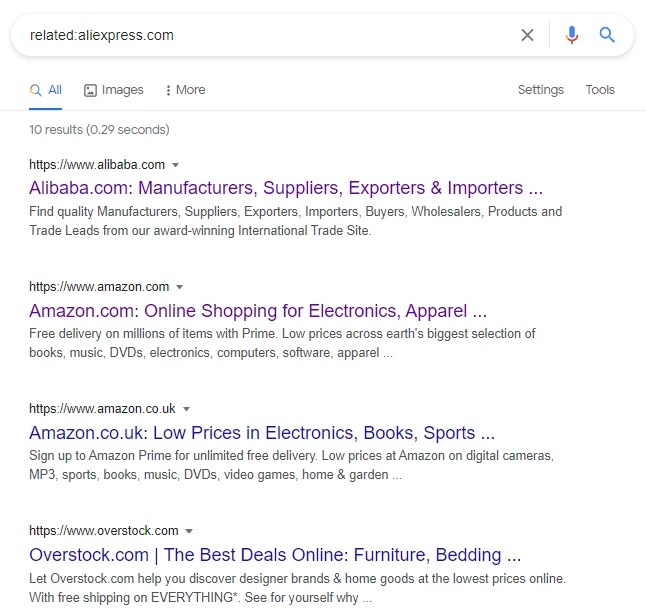 只适用于 Google 搜索引擎,旨在搜索与某个网站有关联的页面,可能是基于拥有的共同外链判断。