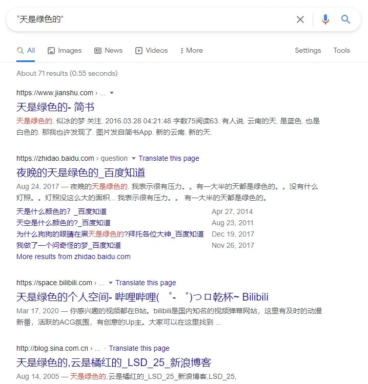 “ ” 指令表示完全匹配搜索。搜索结果中需包含双引号内的所有词,且顺序也需一致。