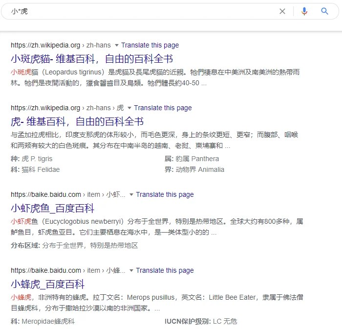 星号 * 是常用的通配符,也可以用在搜索引擎中。