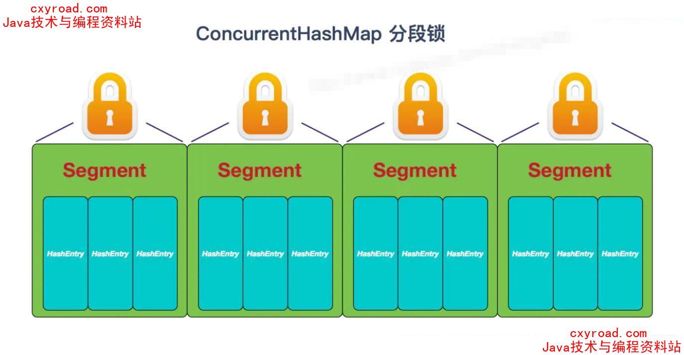 - 首先将数据分为一段一段的存储,然后给每一段数据配一把锁,当一个线程占用锁访问其中一个段数据时,其他段的数据也能被其他线程访问。