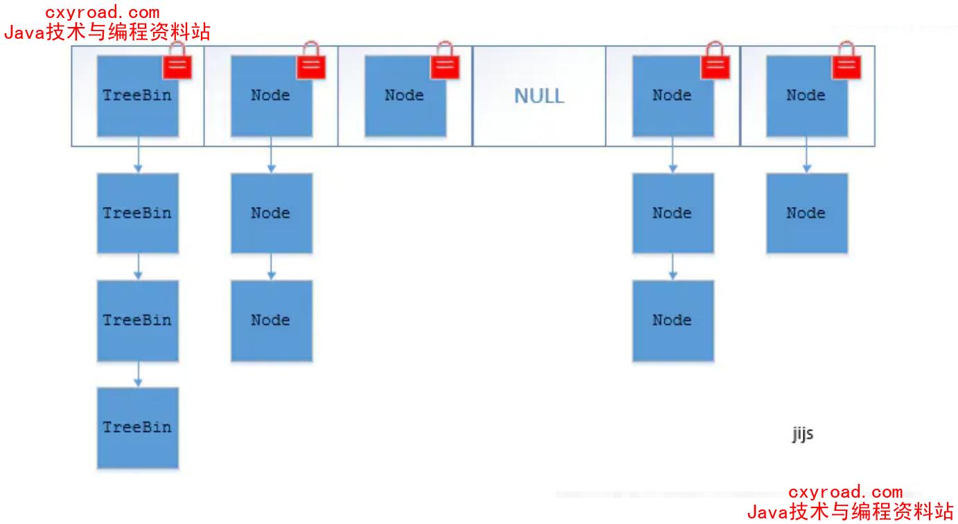3、 JDK1.8的ConcurrentHashMap(TreeBin:红黑二叉树节点Node:链表节点):;