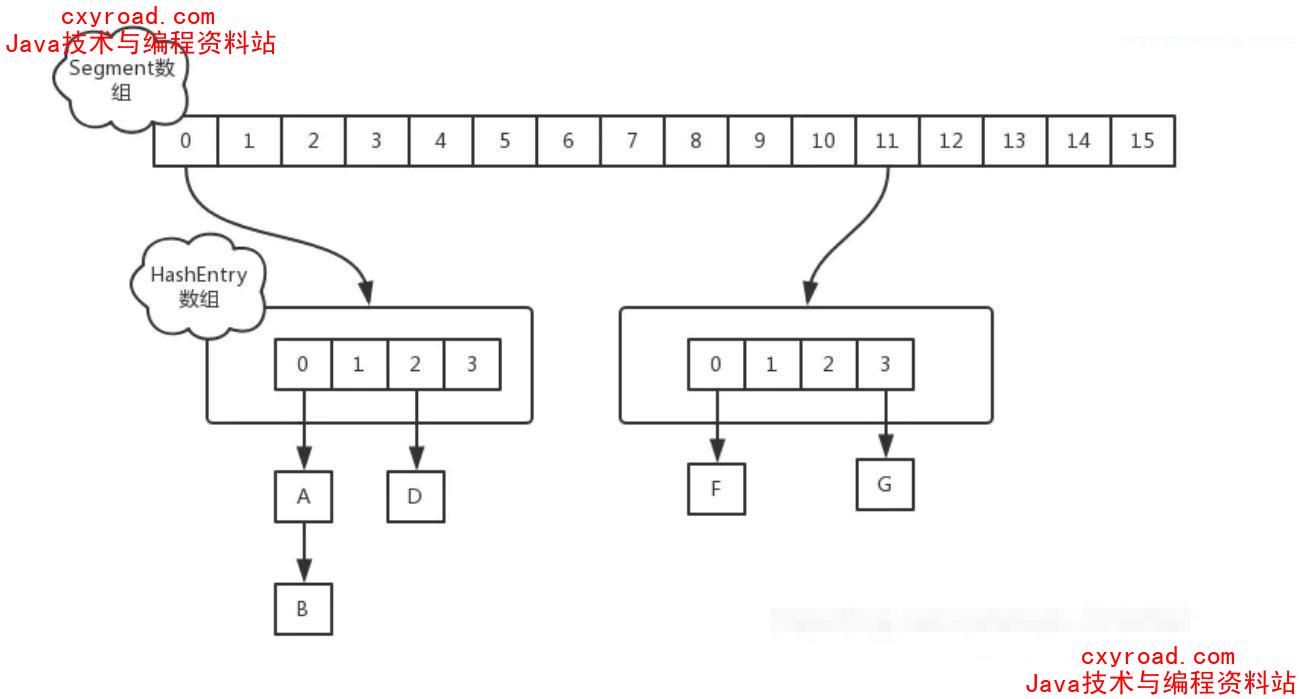 2、** JDK1.7的ConcurrentHashMap:;