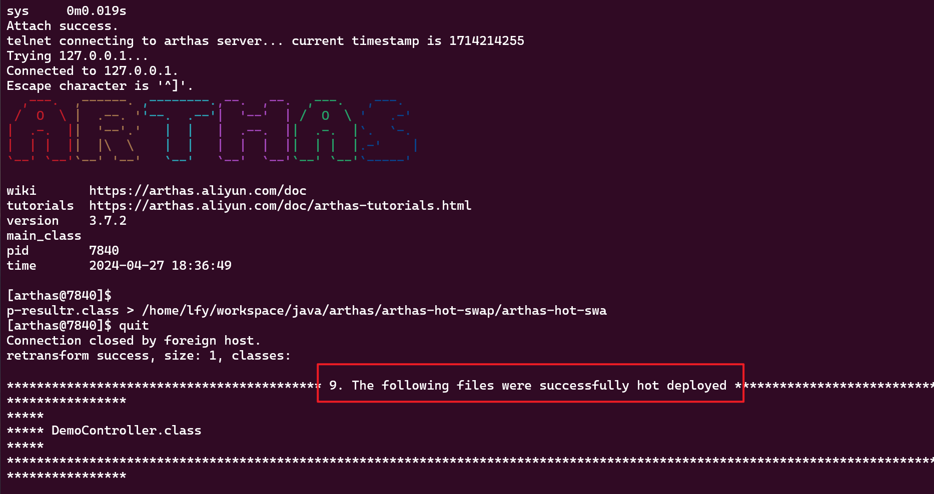 如果只是做了一小部分的修改,就去重新发布的,有点得不偿失(因为发布常常得几分钟甚至十几分钟),这时候我们就可以使用ArthasHotSwap这个插件帮我们进行热更新,并且操作特别简单
