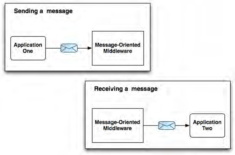 在不同应用之间进行通信或者从一个系统传输数据到另外一个系统。两个应用程序之间,或分布式系统中发送消息,进行异步通信。