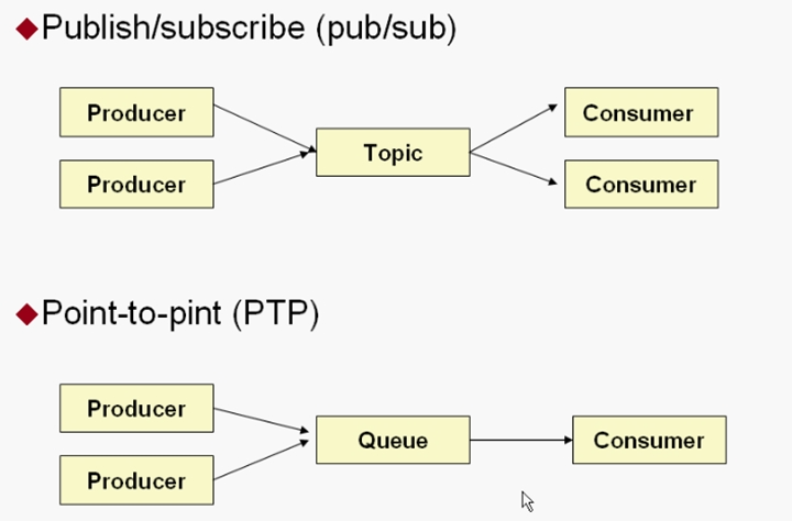 | JMS 公共 | 点对点域 | 发布/订阅域 |