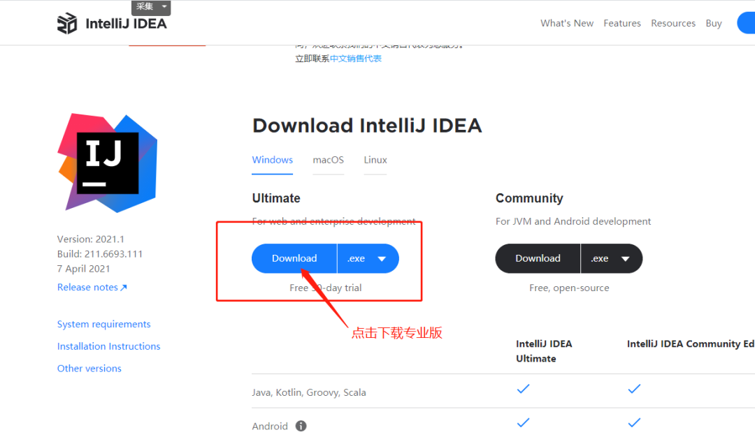 第一步: 下载最新的 IDEA 2021.1 版本安装包