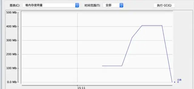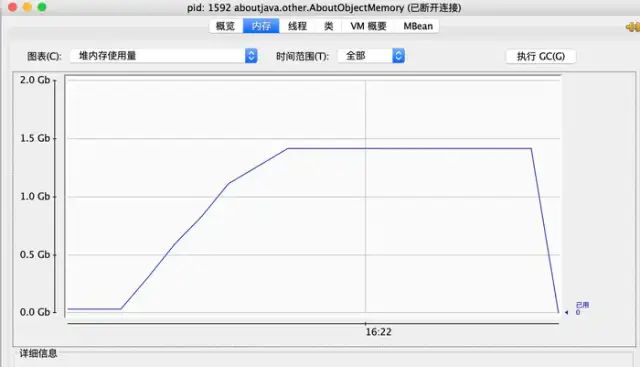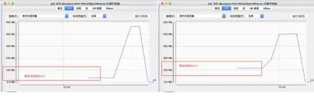 注意这里我是直接将集合的大小初始化为了二千万的大小,所以程序在正常启动的时候占用内存是100+MB,正常程序启动仅仅占用30+MB的,所以多出来的60+MB正好是我们初始化的数组的大小。至于为什么要初始化大小的原因就是为了消除集合在扩容时对我们观察结果的影响